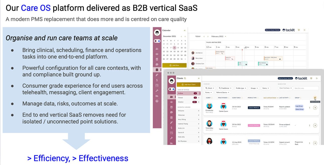 So let’s fast-forward to today, Tacklit now have two core products, Care OS and Engage.