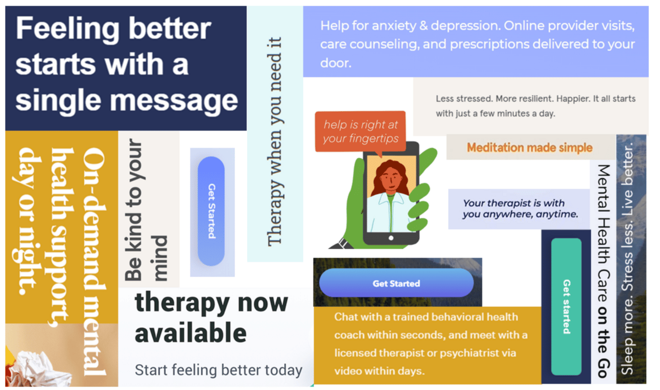 A collage of COVID era messaging from mental health businesses.