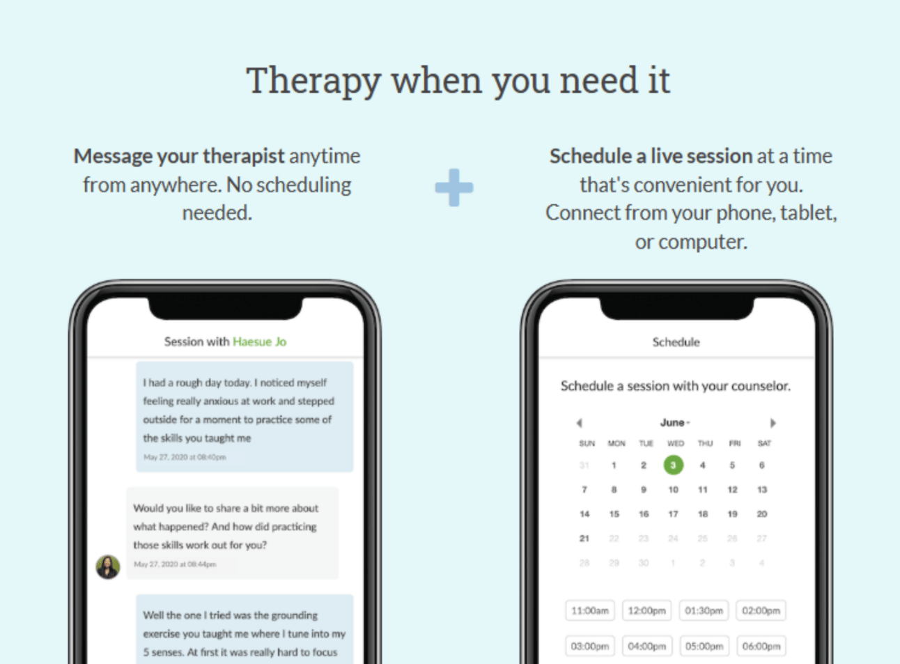 BetterHelp messaging from August 2020