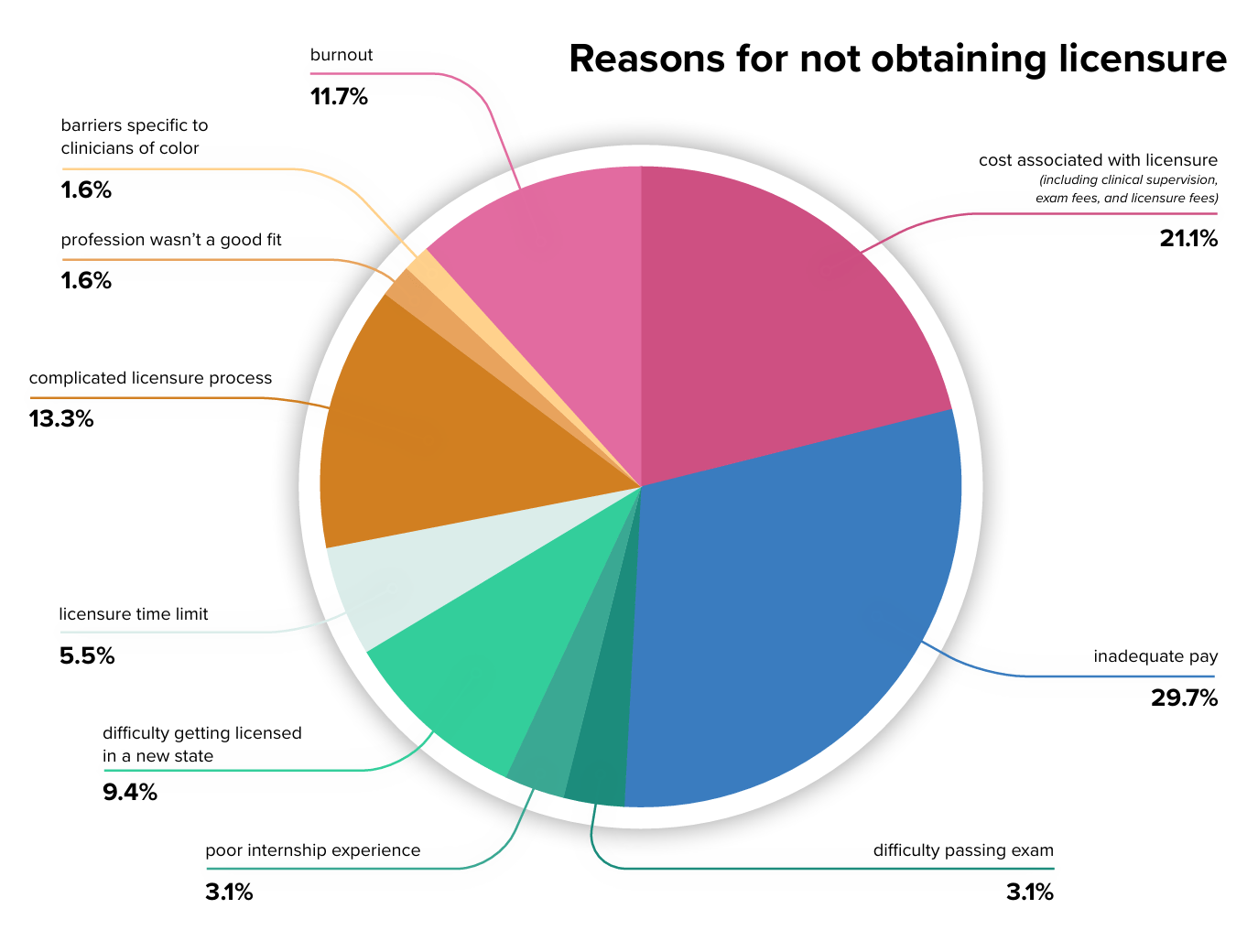 We’ve got a huge shortage of clinicians, and yet, less than half of those with relevant Master’s level degrees get the required licensure to practice as a clinician. The Motivo white-paper shared an interesting breakdown of why these people didn’t obtain licensure.