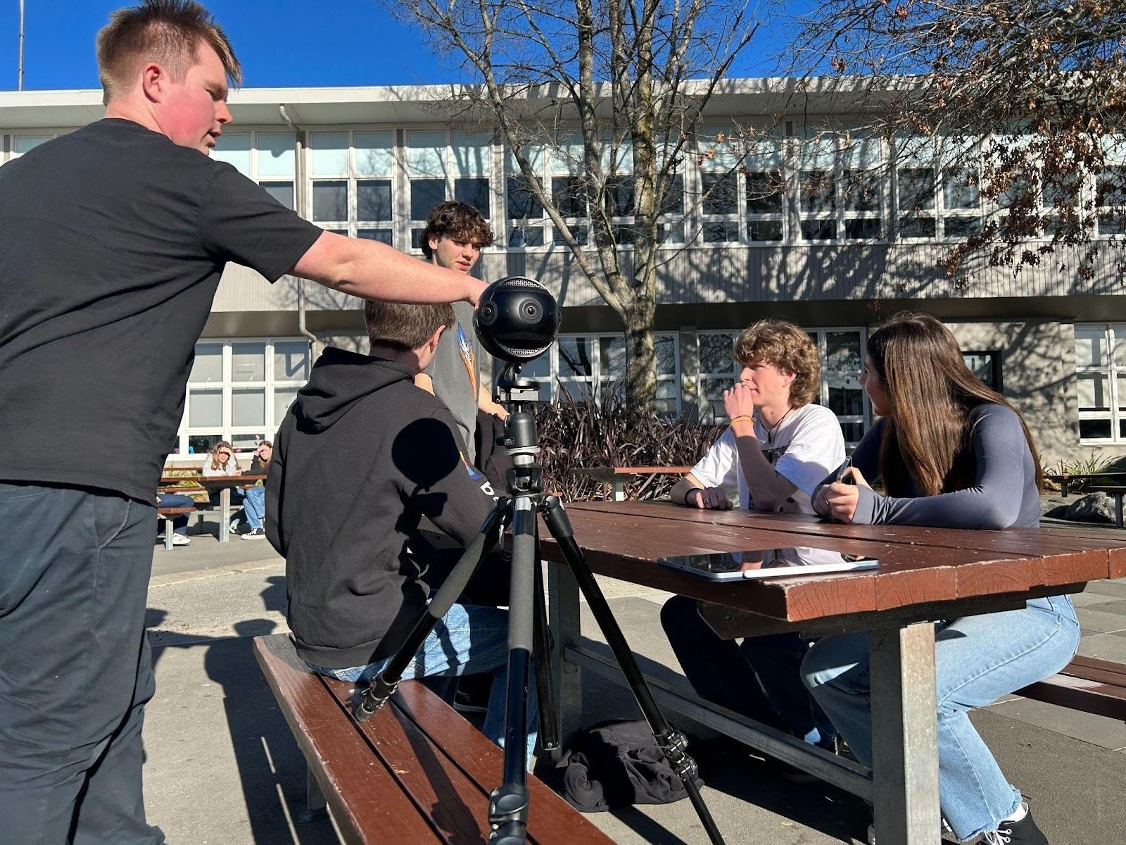The oVRcome team filming a scene with an Insta360 Pro at Cashmere High School